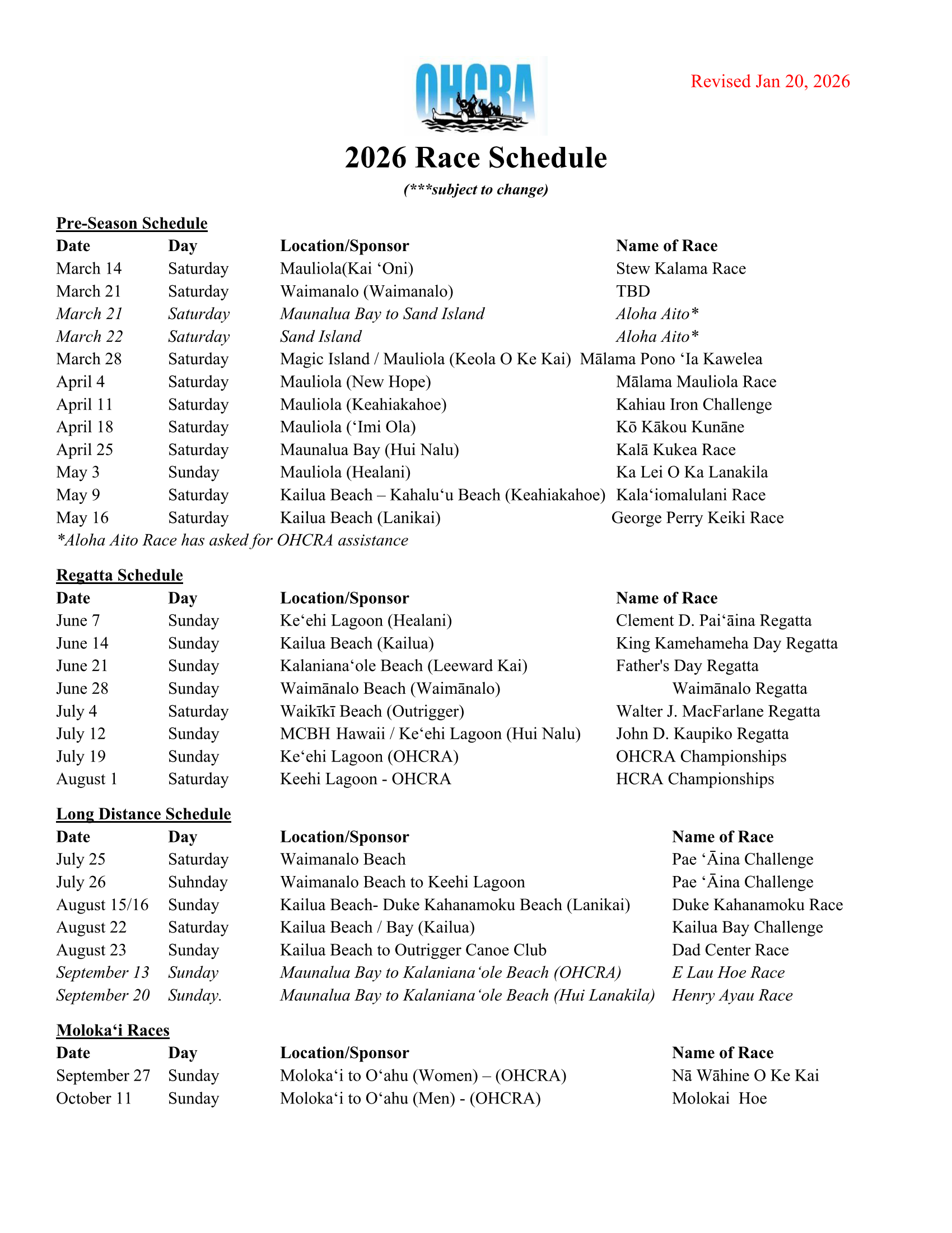 Sunday, June 14 Kailua Canoe Club King Kamehameha Regatta